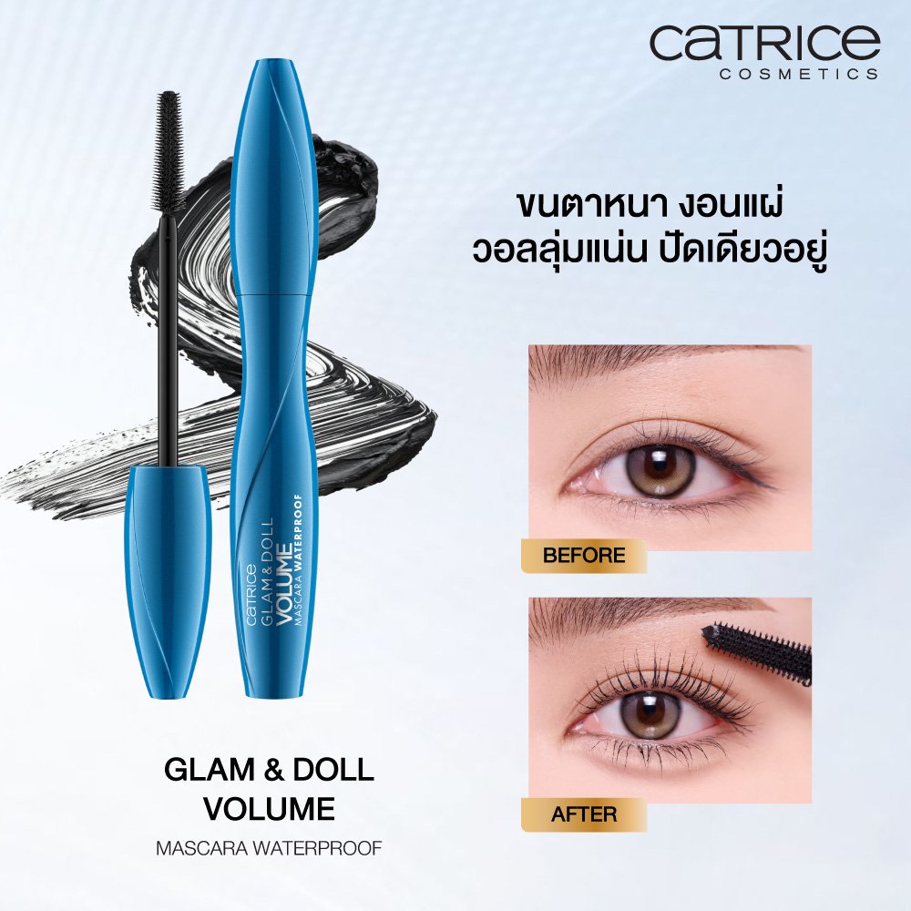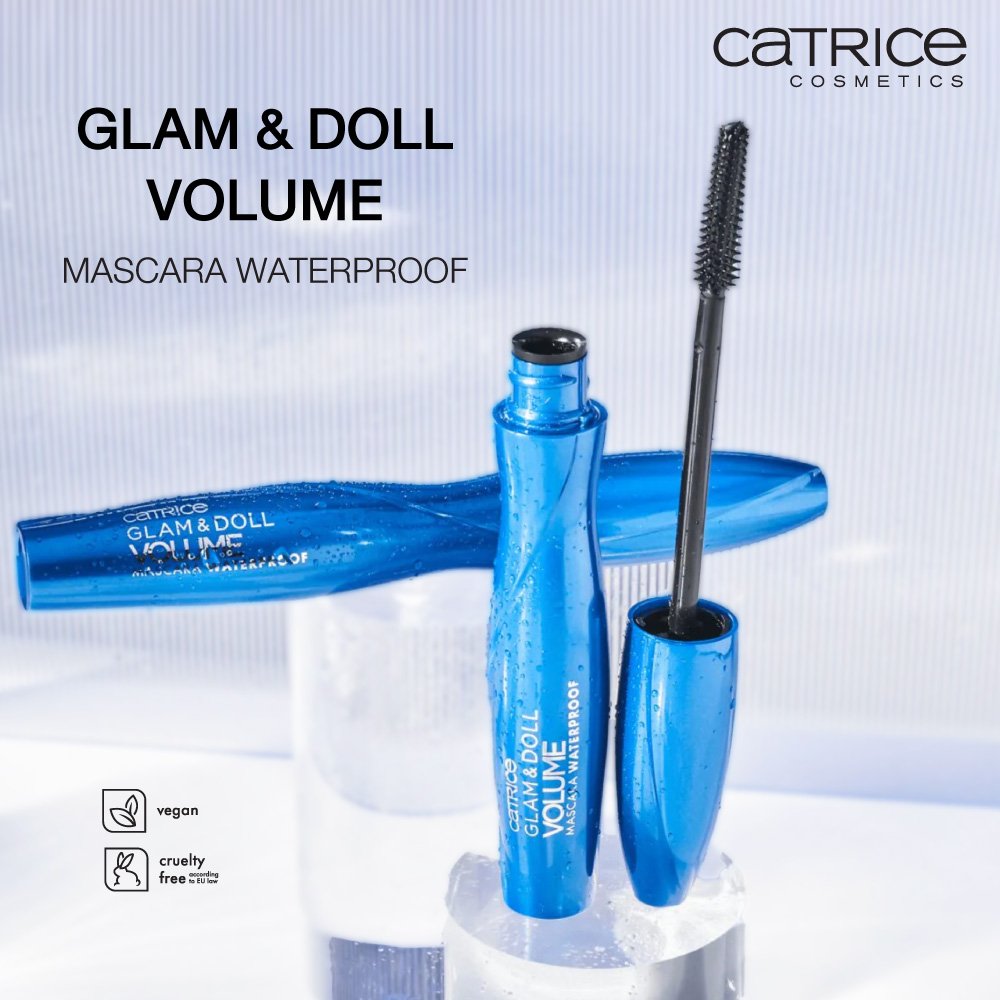Waterproof volume mascara with a special elastomer brush for full lashes. For extra volume, length and density. Special elastomer brush. The Glam & Doll Volume Mascara Waterproof creates particularly long-lasting and voluminous lashes. The special elastomer brush absorbs a lot of the creamy black texture and coats each individual lash without weighing it down. The result is extra volume, fascinating length and a unique curl – all day long! Ophthalmologically tested.