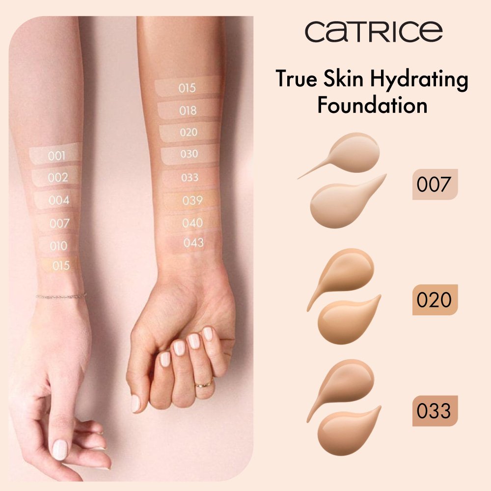 The True Skin Hydrating Foundation is the ultimate beauty secret for a natural and at the same time smooth complexion. The nourishing, long-lasting make-up with medium to high, buildable coverage gently makes blemishes and redness disappear while feeling feathery light on the skin for an incomparable and naturally matt "Real Skin" finish. The vegan formula with hyaluronic acid and watermelon seed oil provides intensive moisture.